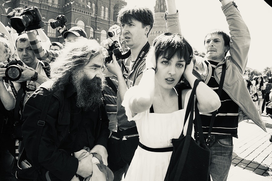 «Нашла картинку со своего первого гей-парада. Мне только что прилетело в висок и в ухо, я слышу только тишину. Жду новых ударов. С правого края фотки видна нога убегающего человека – это нападавший. Его задержат, откроют уголовное дело, потом закроют. Следователь скажет моему адвокату, что не понимает, какой защиты я хочу – я лесбиянка, я вышла на улицу и получила в кочан, все естественно.В левой руке у меня синий пакетик. Там еще два маленьких радужных флага. На тот случай, если вырвут основной. Аню (руки заломаны) прямо сейчас уводят в автозак. Я попытаюсь бежать за ней, но очень кружится голова, я не могу догнать. Тогда я открою пакетик, достану маленький флаг. Пока я на свободе, гей-парад продолжается.»Все безнадежно», «зачем подставляться», «это ничего не меняет». Пока у меня есть ноги, я буду идти. Пока у меня есть голос, я буду говорить. Мне не нужно разрешения, чтобы ходить и говорить. Я не буду помогать фашизму ни молчанием, ни покорностью.
